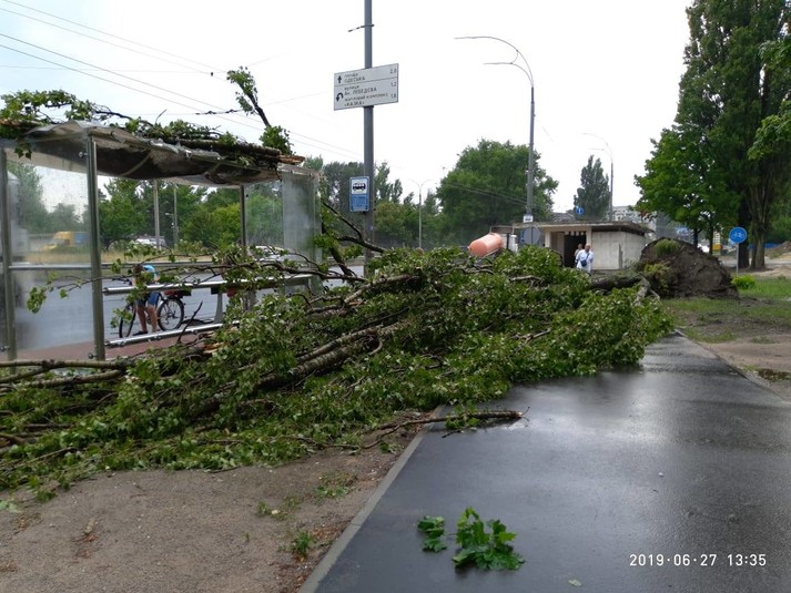 Як повідомлялося, у четвер, 27 червня, близько 12-ї години у Києві розпочалася гроза, зірвався шквалистий вітер.
