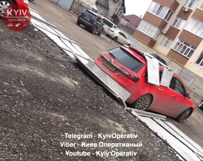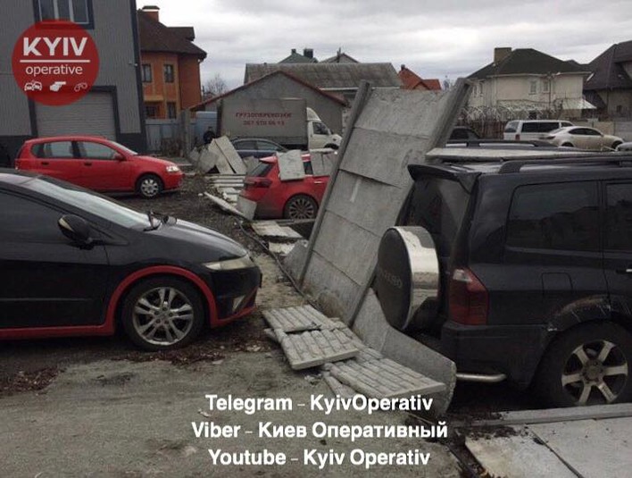 Крім того, у Крюківщині Києво-Святошинського району на території ЖК «Вишнева оселя» впала огорожа. ЇЇ уламками пошкоджено два припаркованих автомобілі.