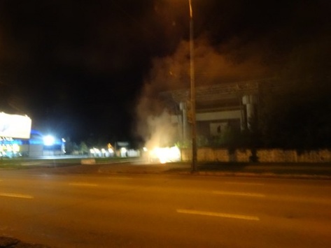 «Фронт звільнення тварин (Київ) підпалив рекламний банер біля дельфінарію «Немо».
