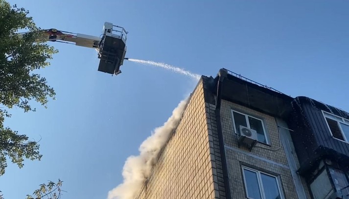Загорілася покрівля покрівлі 5-поверхового житлового будинку на площі близько 600 м кв.