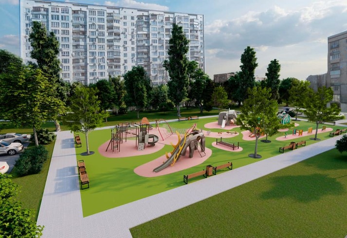 Ще один сучасний дитячий майданчик планується встановити у сквері на Русанівській набережній, 6. Окрім уже звичних елементів, передбачено встановити унікальні ігрові комплекси у вигляді тварин.