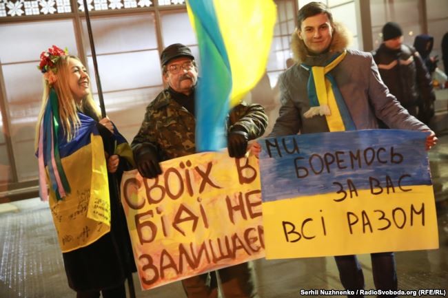 Зустріли на летовищі борт родичі звільнених громадян, сотні активістів та журналістів, які кілька годин очікували їхнього прильоту із Харкова