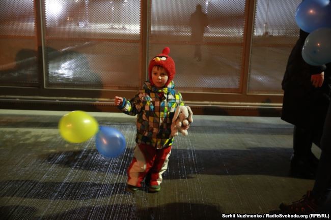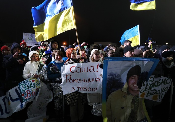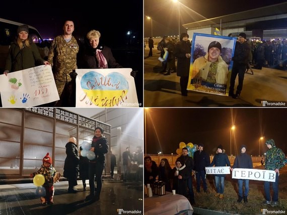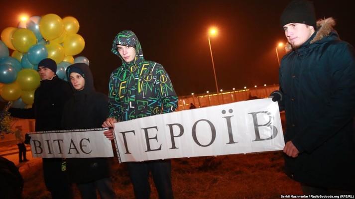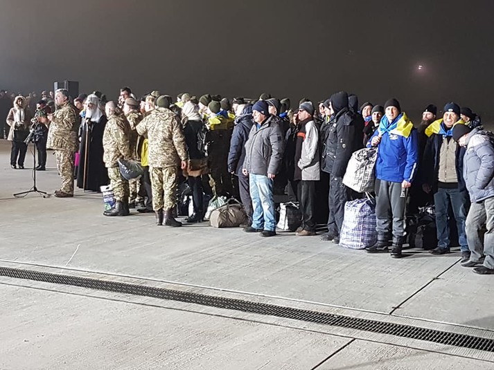 Колишніх бранців супроводжували президент Петро Порошенко, учасники процесу звільнення, представники духовенства.