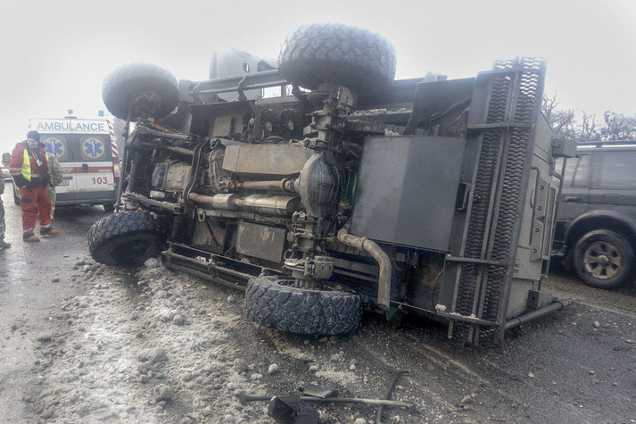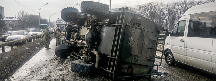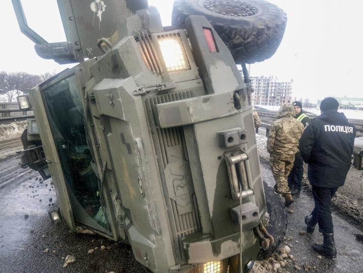 «Cougar їхав в крайньому лівому ряду, коли його підрізав інший автомобіль. Після цього бронемашина вилетіла на узбіччя в сніг і перекинулася», - пише видання.