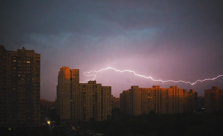 Блискавка, проливний дощ і нічний Київ: вражаючі фото грози у столиці
