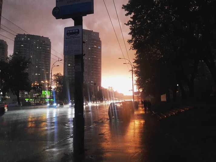 Жителі Києва активно ділилися у соцмережах фотографіями грози у місті.