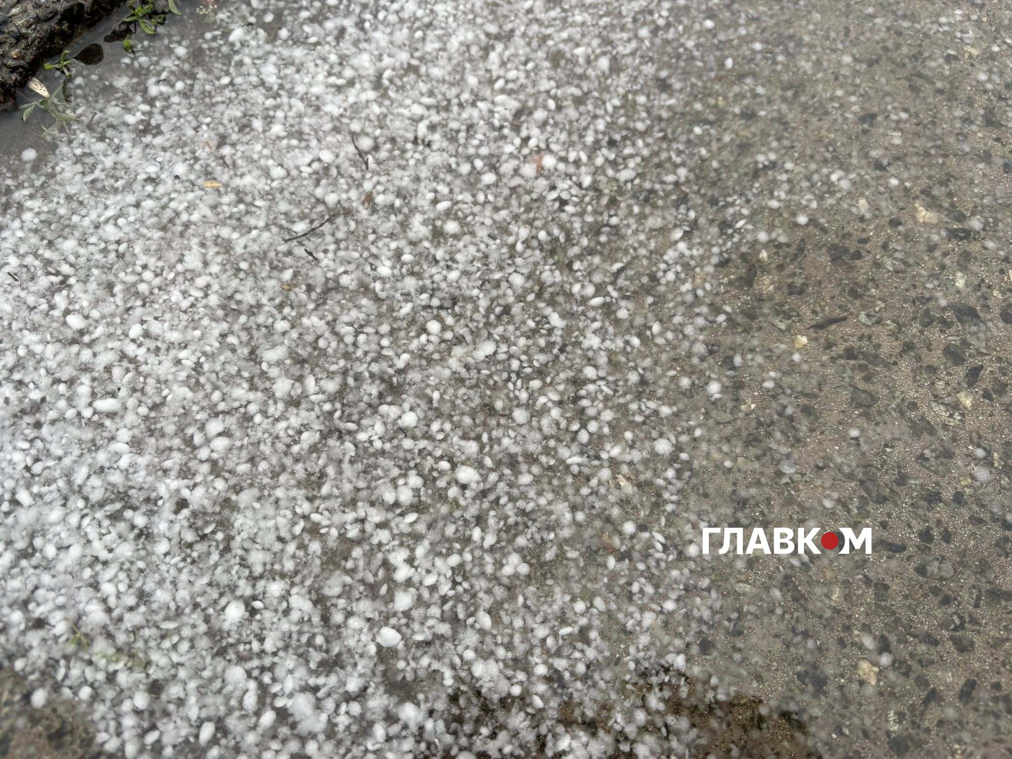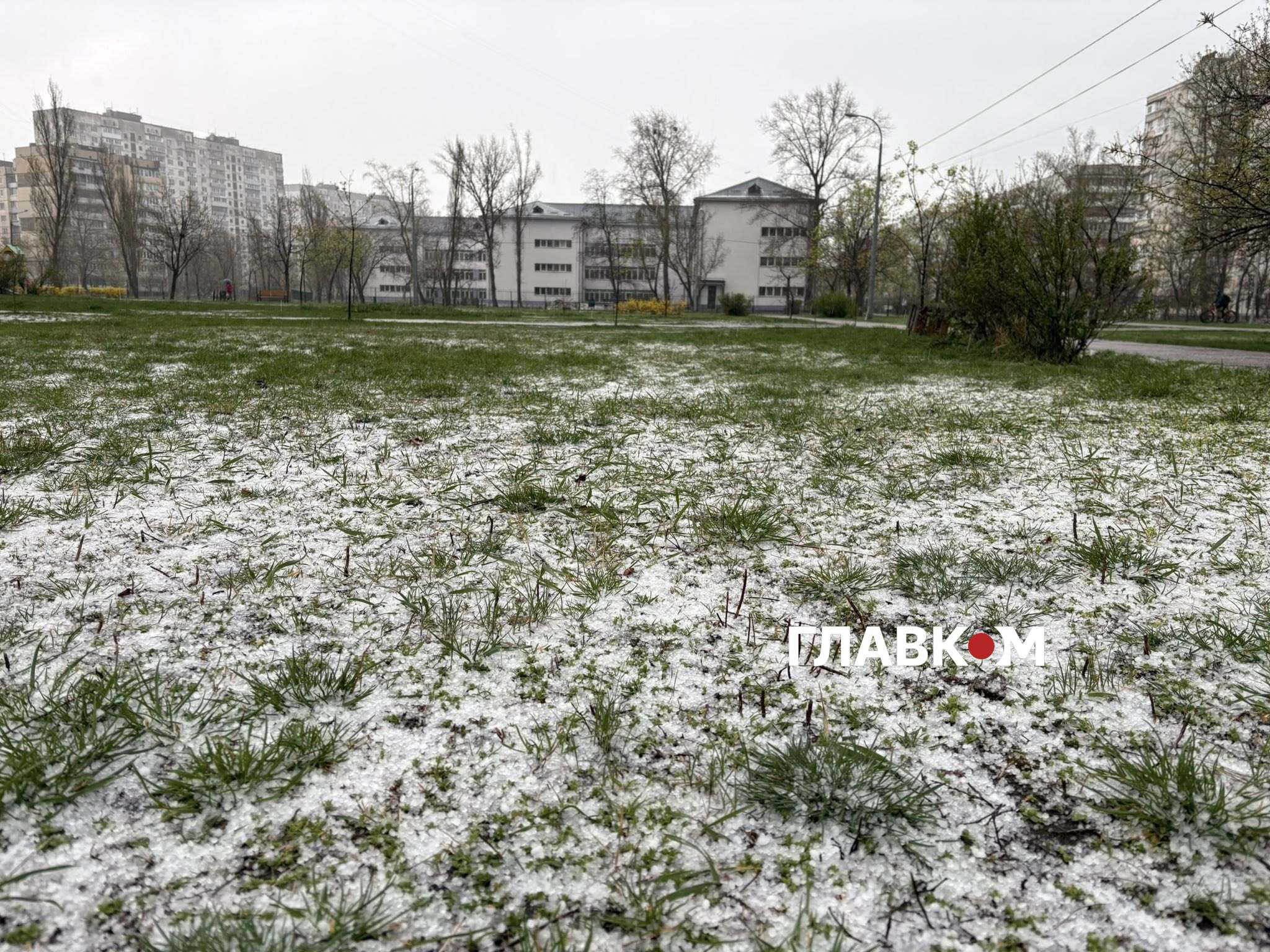 Дрібна крижана крупа за лічені хвилини вкрила газони та тротуари у столиці
