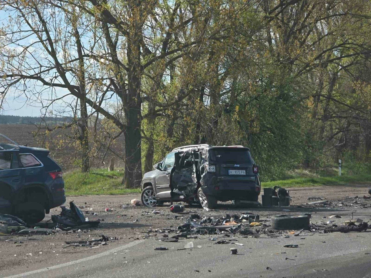 Повідомляється, що під Києвом, зіштовхнулися кілька автомобілів. Удари були настільки потужними, що автомобілі практично розкидало по автошляху.