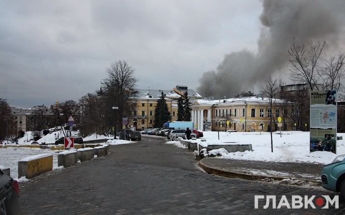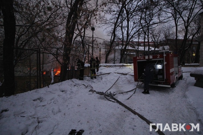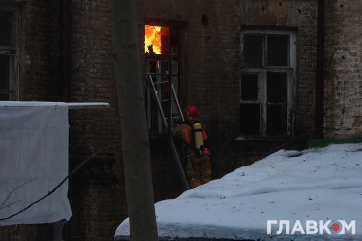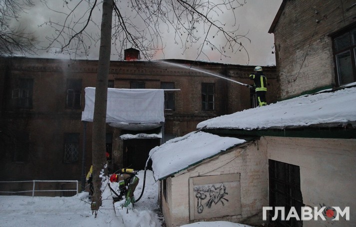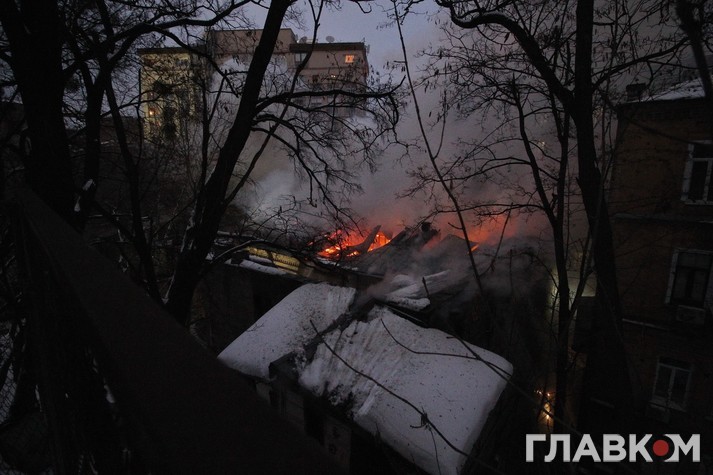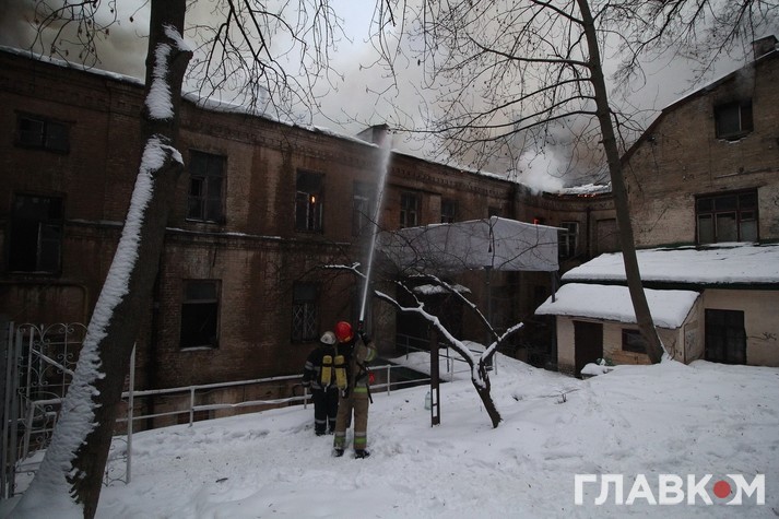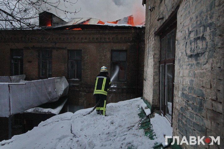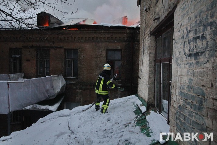 Раніше повідомлялося, що близько 15:20 виникла пожежа у старовинній будівлі на вул. Грушевського, 4б. Це стародавній особняк роботи відомих київських архітекторів В. Ніколаєва, О. Шварценберга, пам‘ятка місцевого значення. Пожежа в ньому виникає вже не вперше.