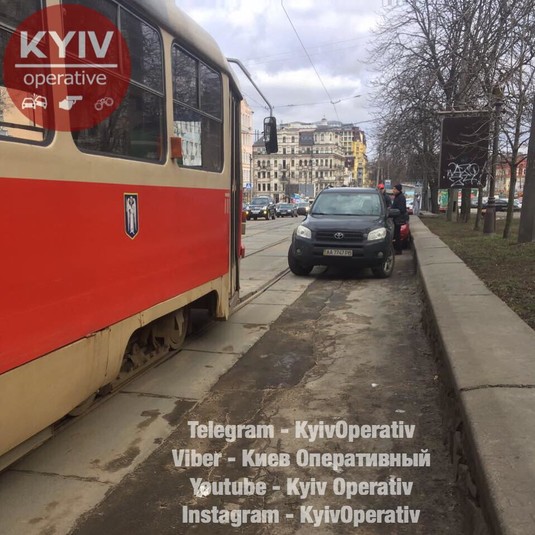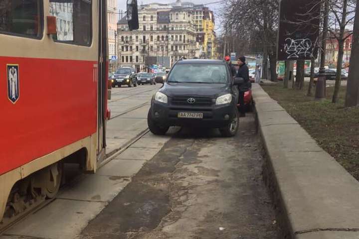 «Герой парковки» покинув автівку прямо на трамвайних коліях