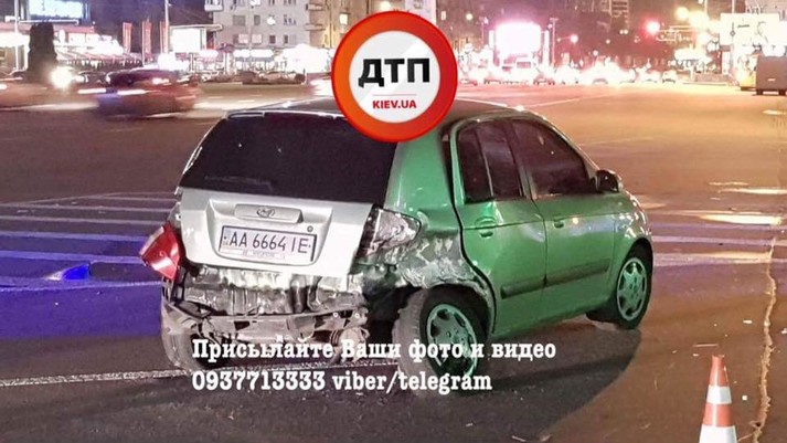 У центрі КИєва на проспекті Перемоги зіткнулися поліцейський автомобільToyota Prius та цивільний Hyundai Getz. Про це інформує паблік dtp.kiev.ua повідомляє «Главком».