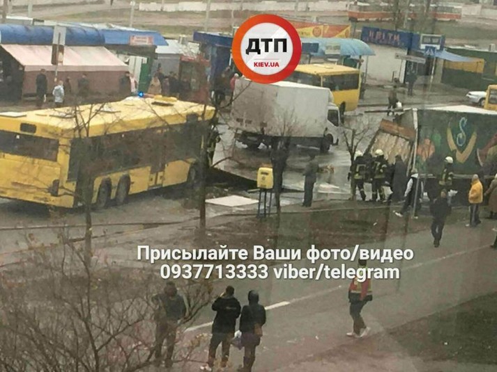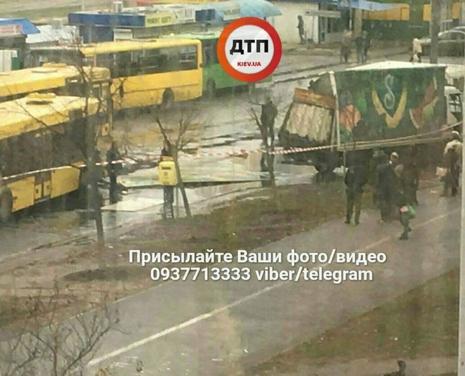 На Троєщині зіткнулися вантажівка та маршрутний автобус. На місце ДТП прибули «швидкі» (фото)