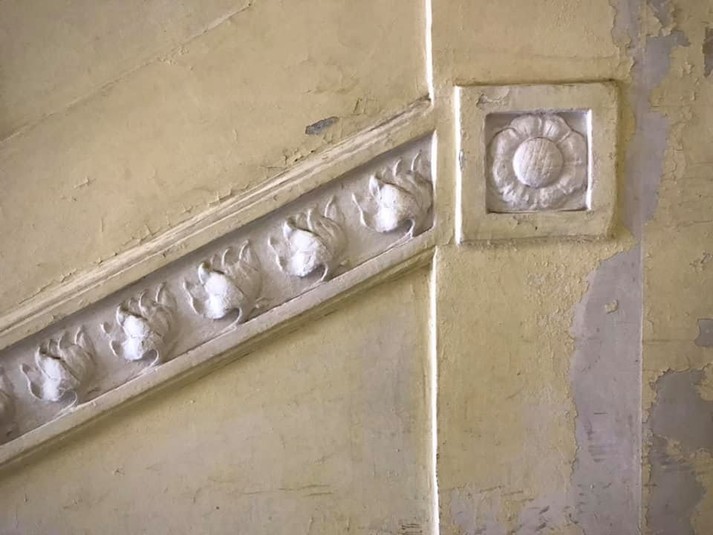 Краєзнавець оприлюднив фото інтер’єр вестибюлю та парадних сходів будівлі.