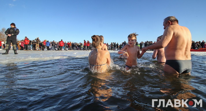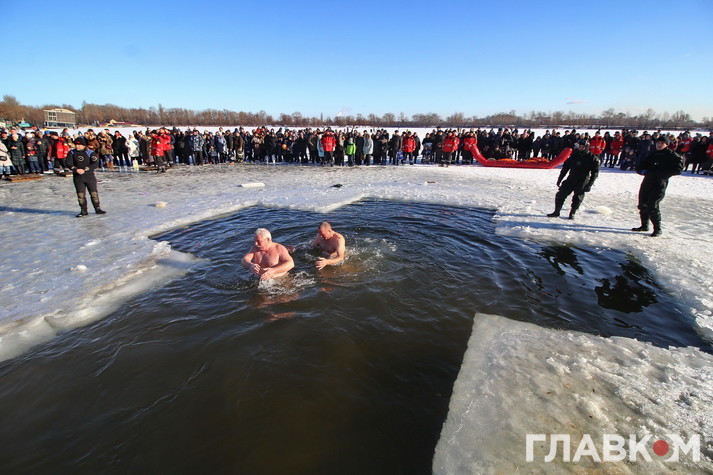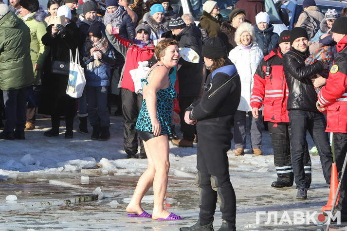 Багато охочих було пірнути у Дніпро. До ополонки стояла черга. Пірнали всі охочі, у кого вистачало духу зануритися у крижану воду.
