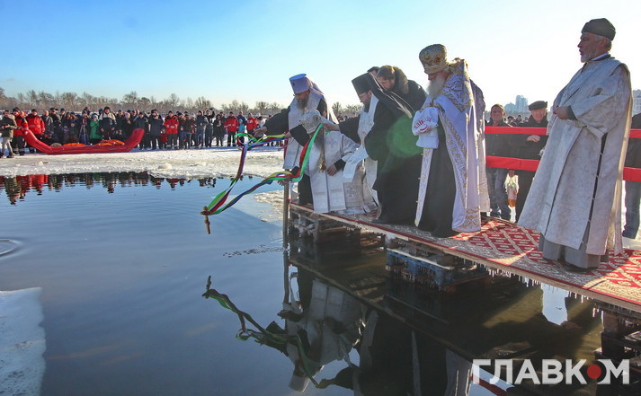 Свято Водохреща розпочалося об 11:30. За півгодини опісля віруючи рушили до самого Дніпра.