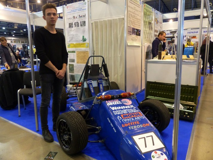 «Це вже наш третій болід. Важить 250 кг. Були в Чехії на змаганнях, у Норвегії, Угорщині. На одному етапі свої автомобілі представляють за кордоном 30 команд. Змагаємось з інженерами провідних вузів. Перевіряють чи герметична паливна система, тест на прискорення та здатність гальмівної системи», - розповідає Артем Ліщук, один з винахідників. На конструювання та виготовлення цієї машини пішов один рік.