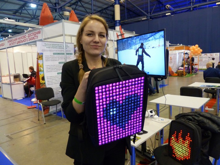 «Рюкзак має портативний зарядний пристрій, з'єднується по Bluetooth зі смартфоном. В темну пору доби можна намалювати на рюкзаку знак, щоб спокійно їхати на велосипеді. У віці 12-16 років такі інтерактивні рюкзаки купують для самовираження, передачі настрою. Починаючи з лютого стартуватиме масове виробництво ґаджетів», - розповідає Анна Скрипник, представник 8BackPack.