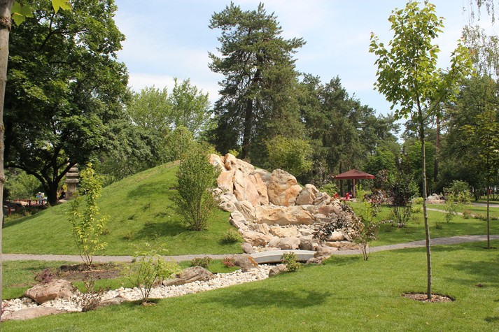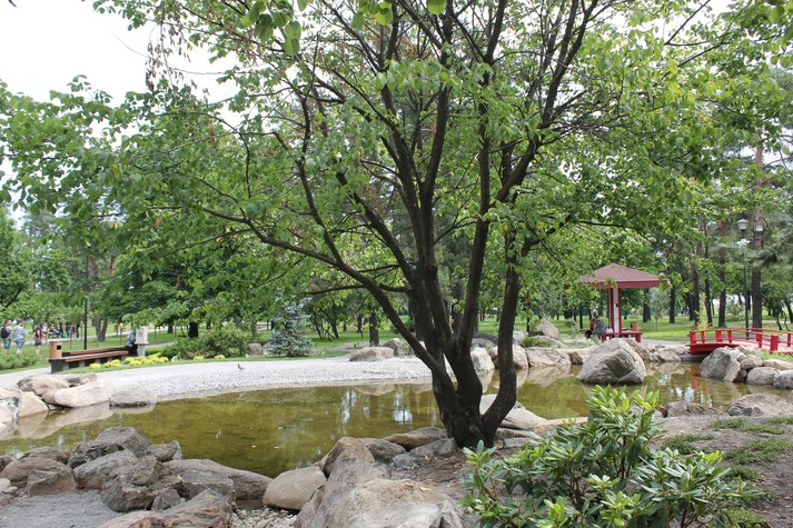 «Яскравою родзинкою парку стала завершена ландшафтна композиція з оновленим декоративним озером, вражаючим каскадним водоспадом та сухим струмком, плавно перетікаючим в сад каміння. Також встановлено традиційну японську пагоду. Всі деталі ретельно підбирались, так як кожен елемент композиції і озеленення має своє певне значення», - повідомляють фахівці.