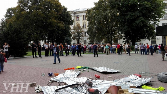 До офісу холдингової компанії прибули кілька десятків правоохоронців. «Азовці» спробували увірватися у будівлю компанії, кричали, кидали каміння та файєри, все це летіло у правоохоронців та співробітників холдингу, які прийшли на роботу. Однак правоохоронці відтіснили протистувальників.