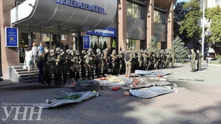 Співробітники Нацгвардії та спецпідрозділу КОРД відтіснили представників Цивільного корпусу «Азов», які намагалися штурмувати офіс ПАТ «ХК «Київміськбуд».