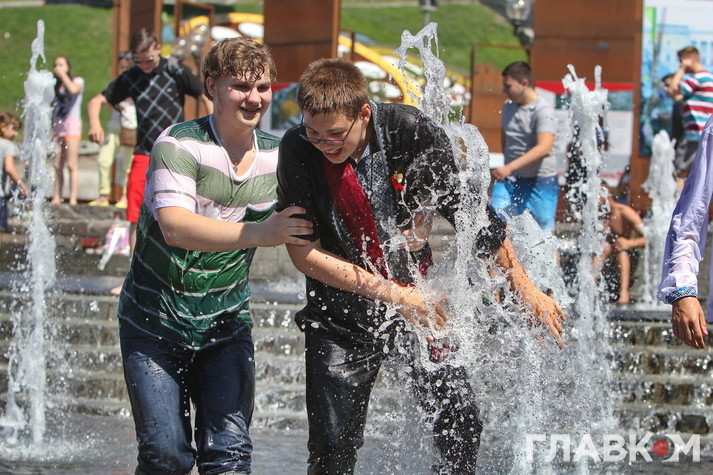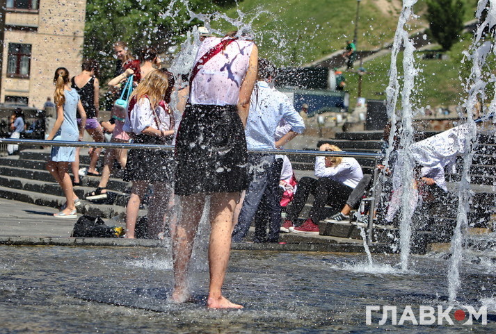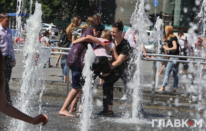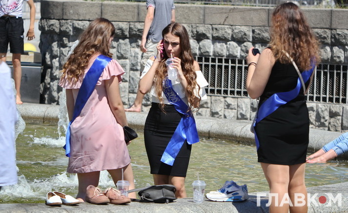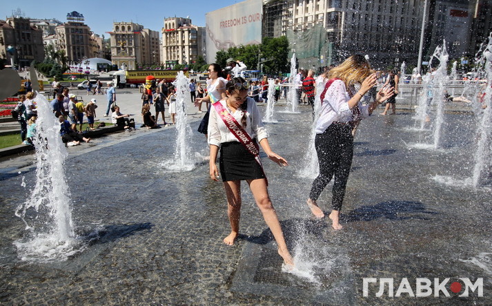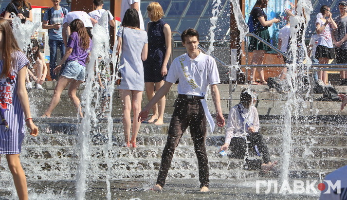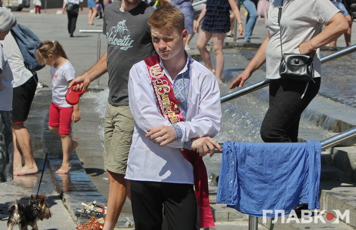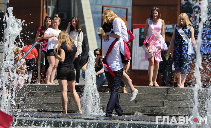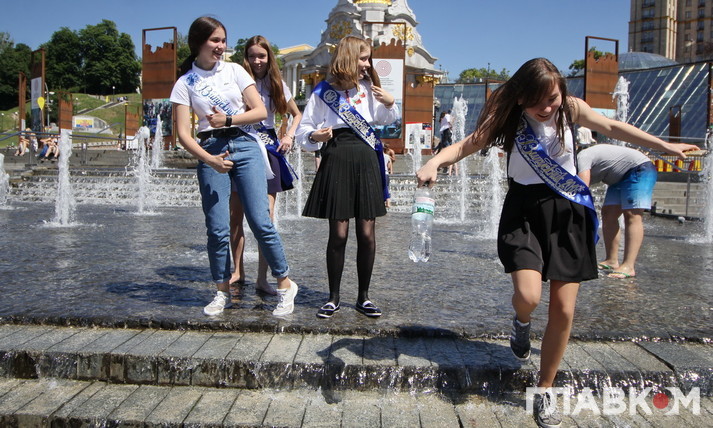 Спекотний випуск - 2018: столичні школярі святкують у фонтані на Майдані (фоторепортаж)