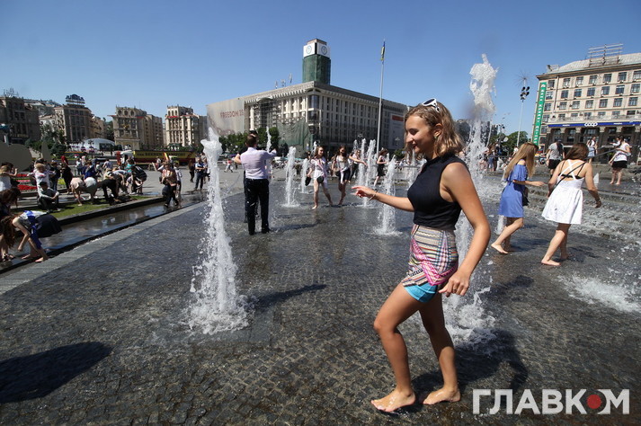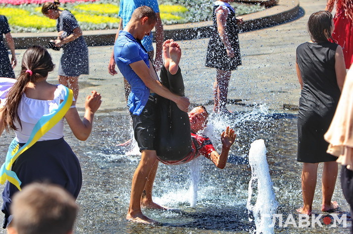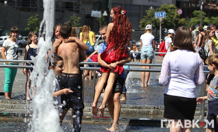 Погода, яка стоїть цими днями у Києві тільки сприяла водним процедурам. На сонці температура повітря перевищувала відмітку +30°.