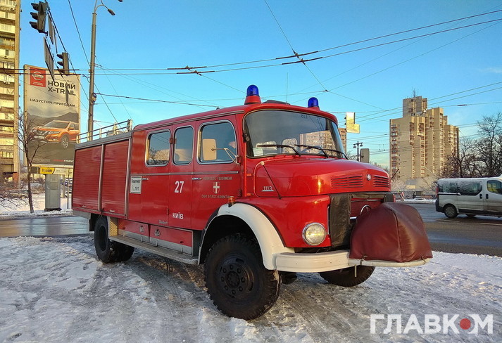 Сьогодні в районі Печерського мосту, в Києві, був помічений пожежний автомобіль Mercedes-Benz 1976 року випуску.