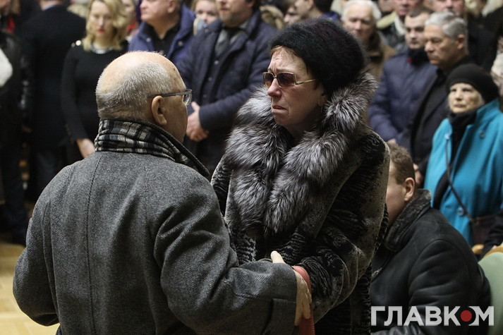 Провести в останню путь Героя України прийшли колишні президенти Леонід Кравчук, Леонід Кучма, Віктор Ющенко, члени уряду, державні високопосадовці, мер Києва, колеги, друзі і родичі.