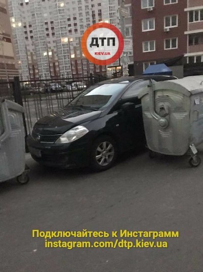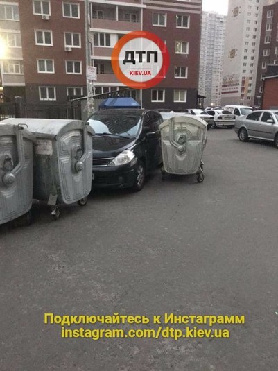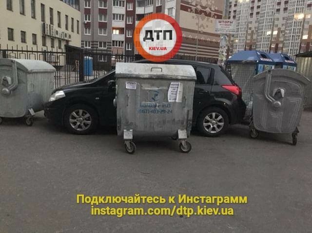 У Києві «героя парковки» заблокували сміттєвими баками (фото)