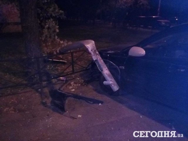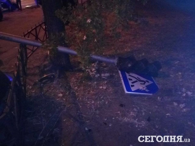 Hyundai зніс світлофор і врізався в огорожу. Постраждав пішохід, який проходив повз, але від госпіталізації відмовився.