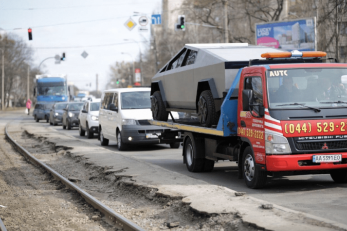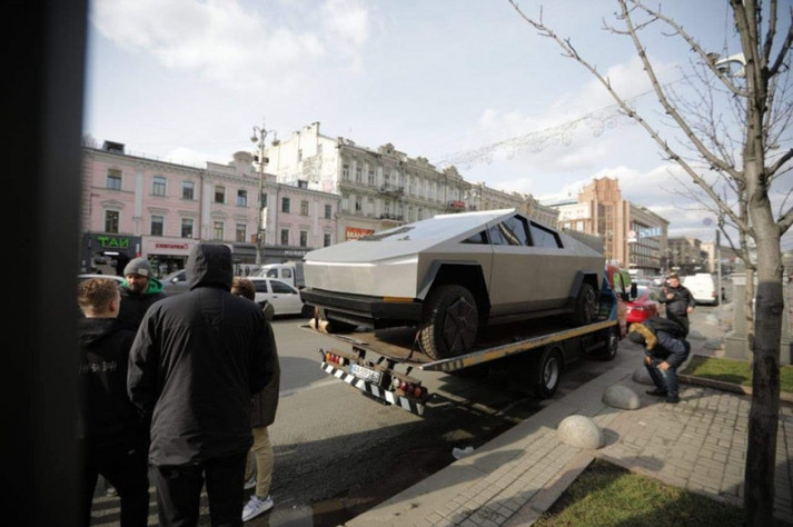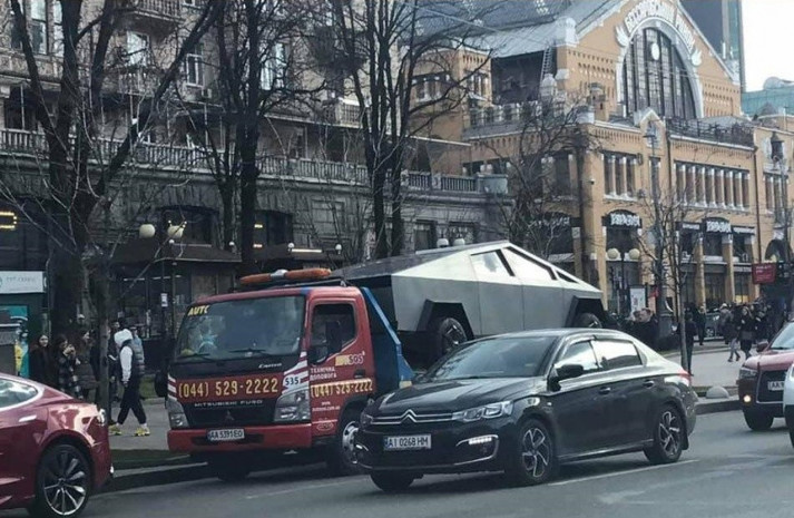 Жителі і гості столиці активно фотографували пікап та ділилися знімками в мережі. На фото видно, як Cybertrack на евакуаторі підвозять через Бессарабську площу на Хрещатик. Юзери навіть пожартували з цього приводу, що авто Маска евакуювали за неправильну парковку.