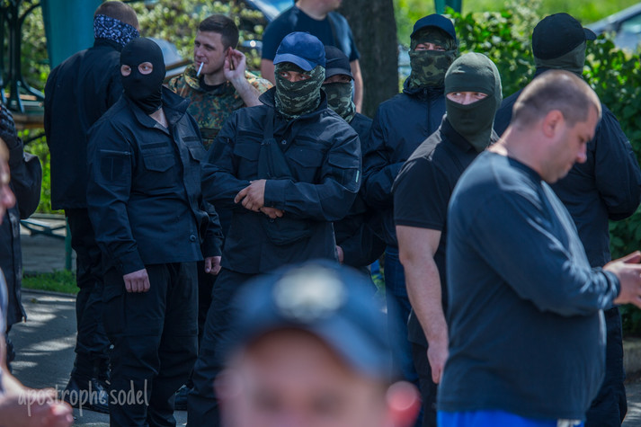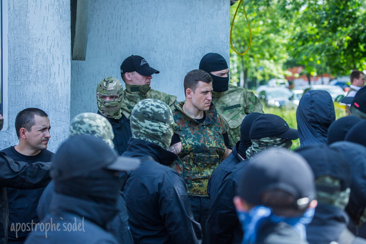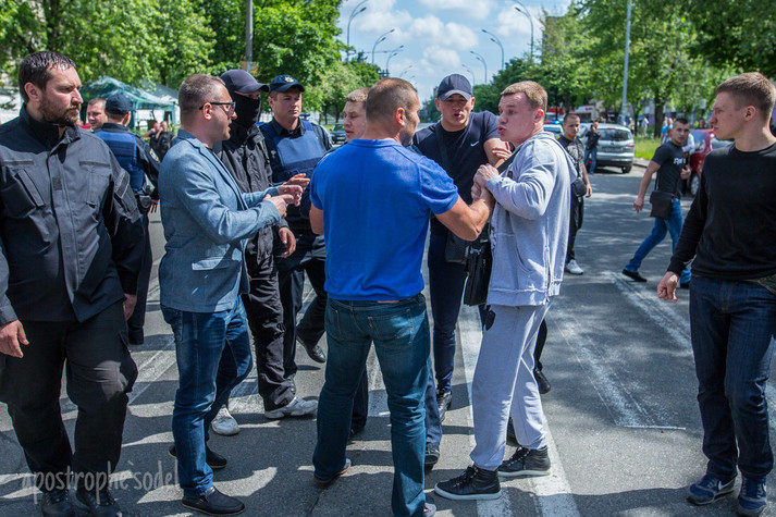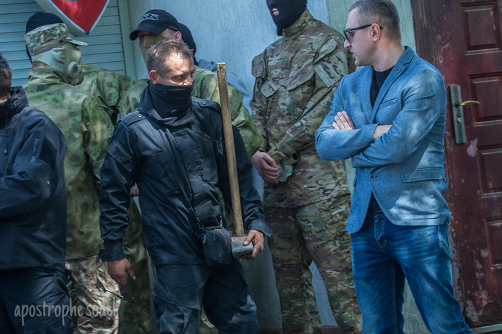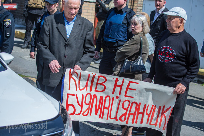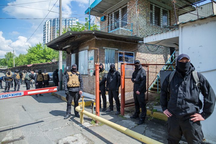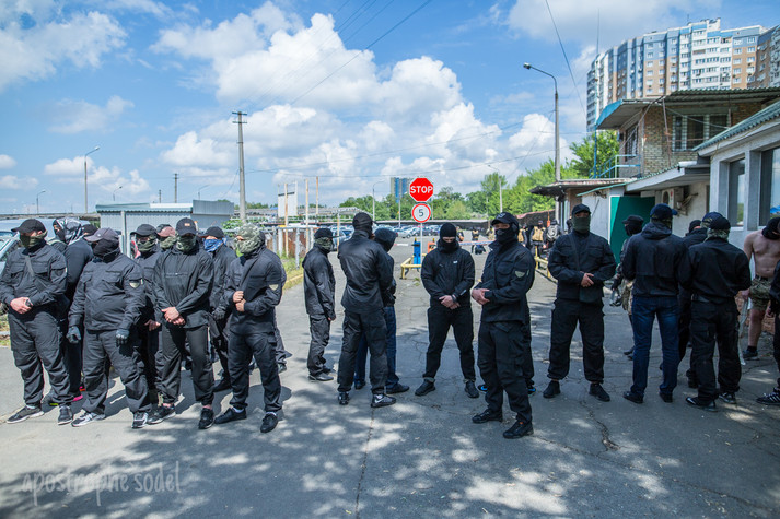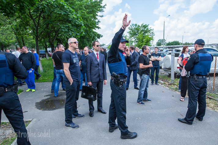 Кілька десятків людей на вулиці Ревуцького спробували вибити двері в приміщення охорони автостоянки.