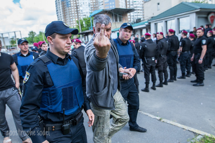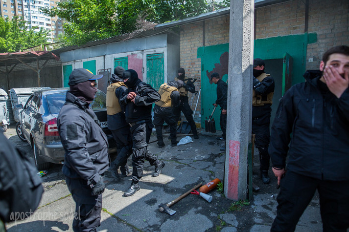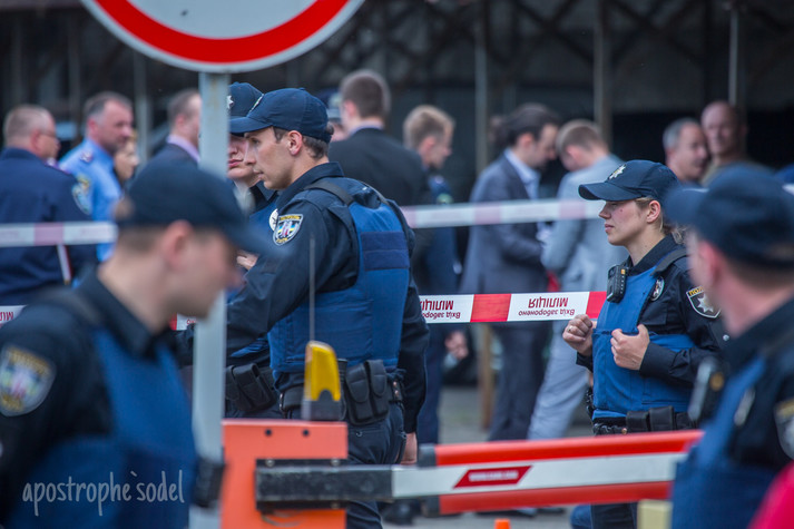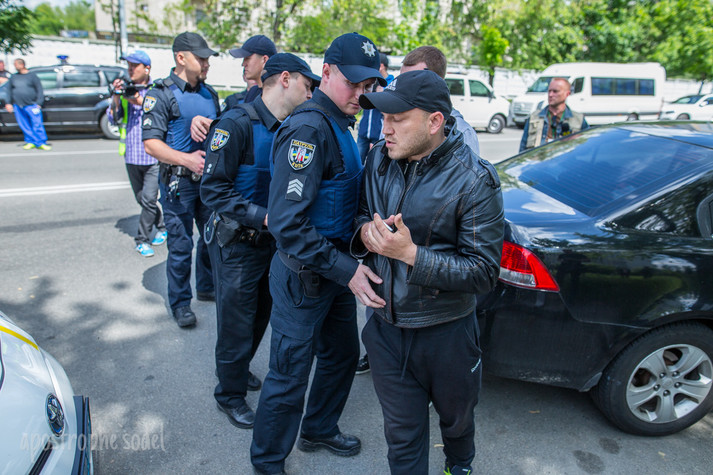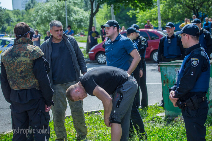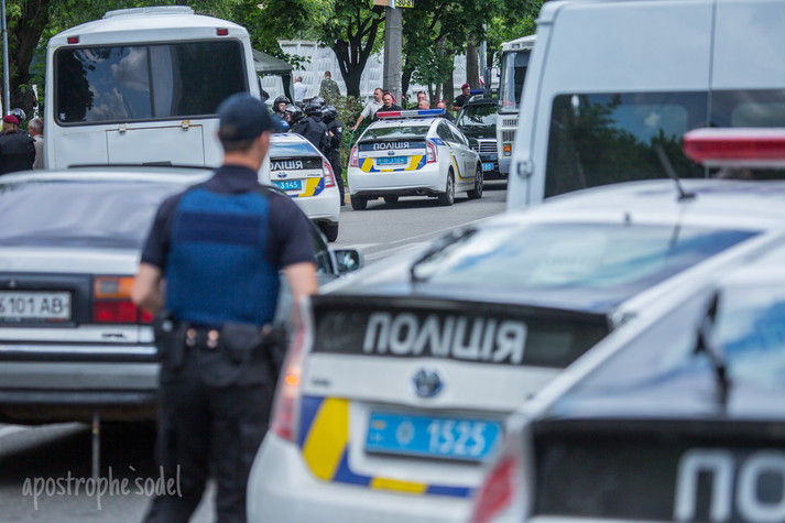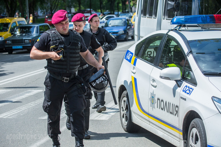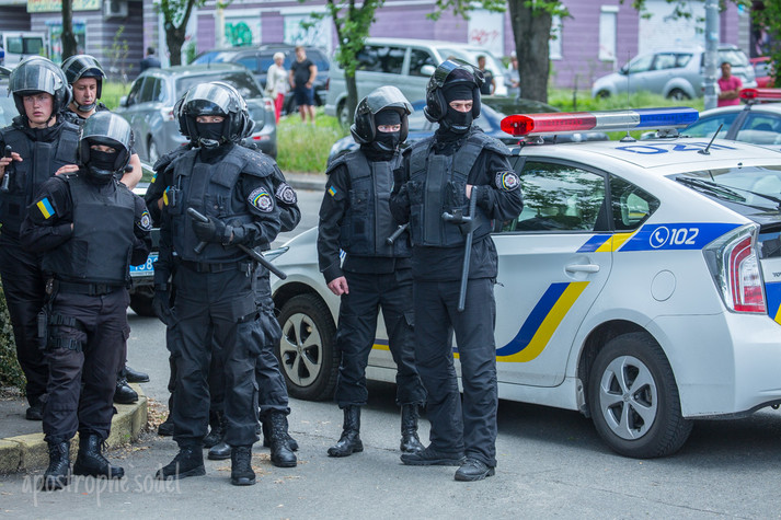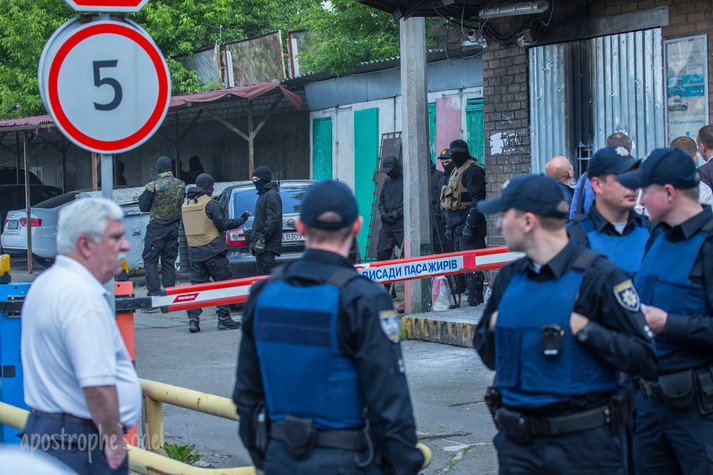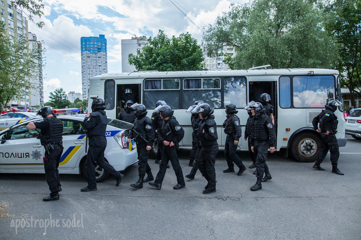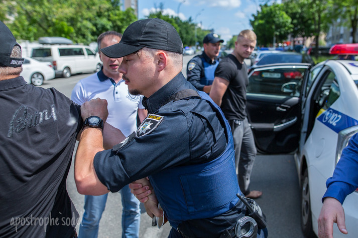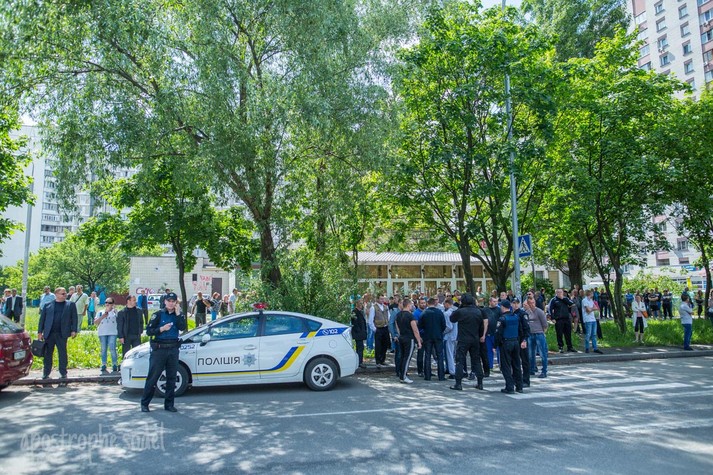 На місце події приїхали вісім поліцейських машин і автобус з бійцями спецпідрозділу. В тому числі, особисто прибув начальник патрульної поліції Києва Юрій Зозуля.