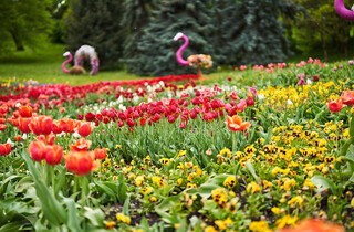 25 квітня на столичному Співочому полі стартувала весняна виставка квітів. Алеї парку прикрасили сотні тисяч квітів різних сортів та видів, серед яких віоли, тюльпани, нарциси, іриси, крокуси, мускарі та інші багаторічники: