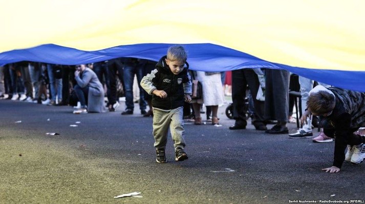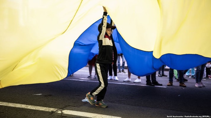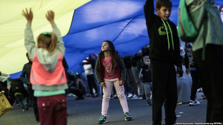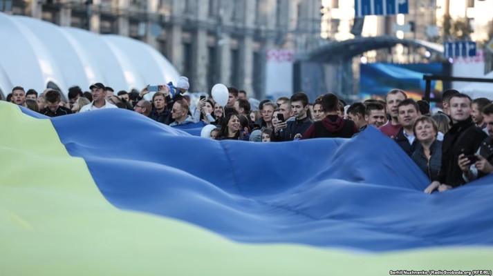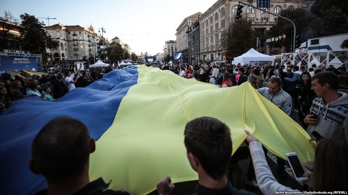 Кілька тисяч українців розгорнули уздовж Хрещатика найдовший прапор в Україні (250 метрів у довжину та 6 метрів у ширину).