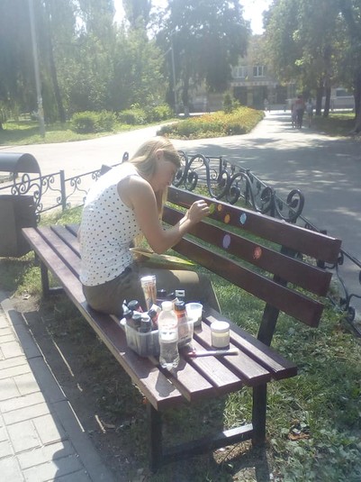 Роботи стали другим проектом художниці. Спочатку казкові мініатюри з’явилися на лавочках у парку Совки.
