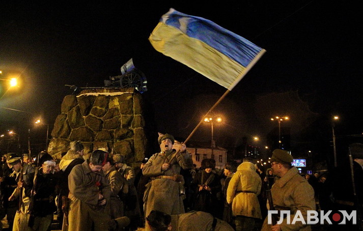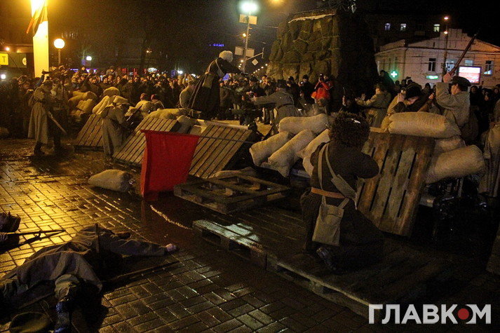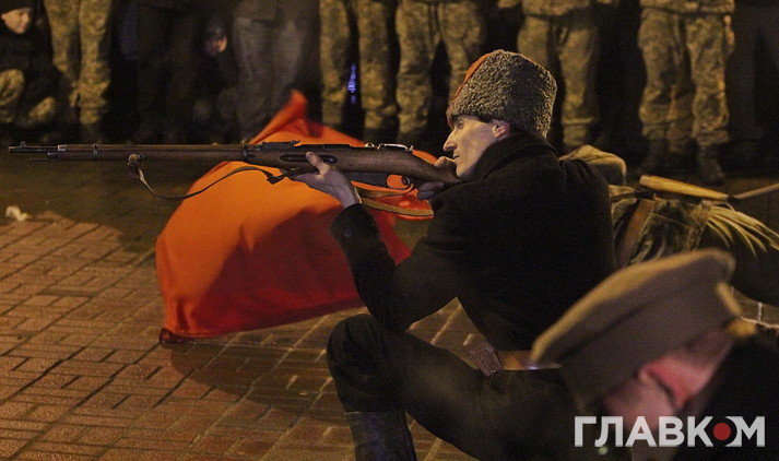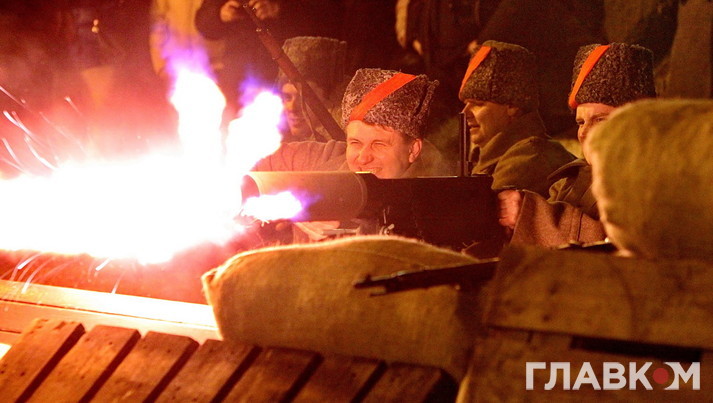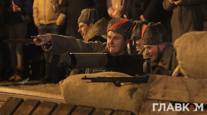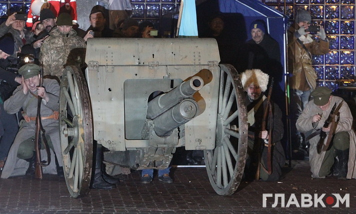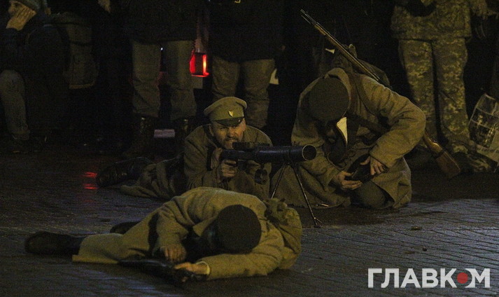 Стрілянина з рушниць та кулеметів, гармати своїми пострілами розбурхала центр Києва. Бійці з різних боків йшли в атаку. Учасники реконструкції відтворили події, що тривали наприкінці січня 1918 року.