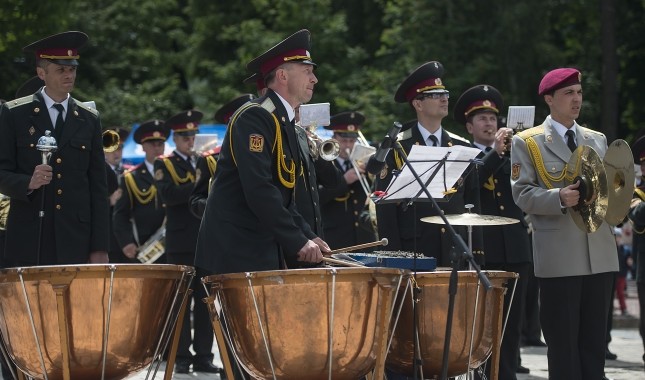 Наразі триває об'єднаний флешмоб параду барабанщиць та виступ Зведеного військового оркестру гарнізону Києва.