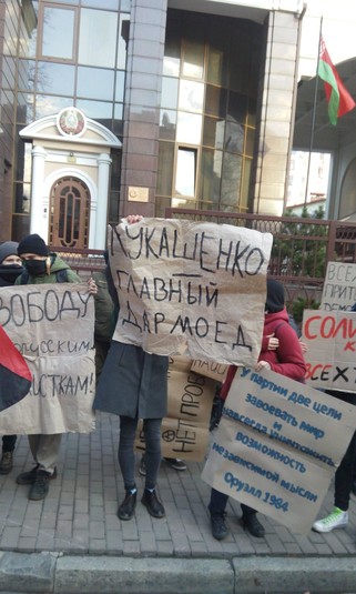 Біля посольства Білорусі в Україні відбувся мітинг на підтримку білоруської опозиції режиму президента Олександра Лукашенка