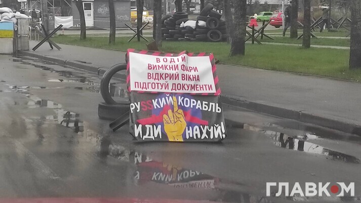 Також у Києві «розквітнула» легендарна марка з російським кораблем.