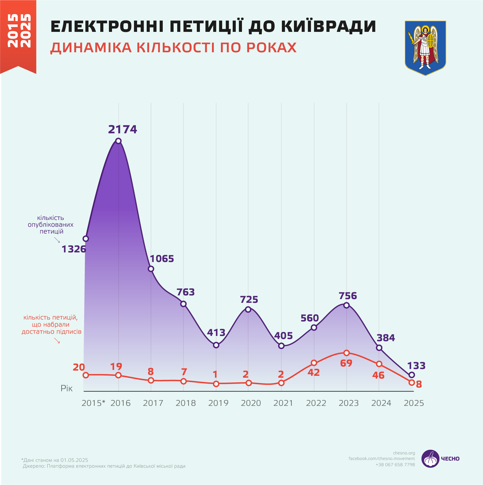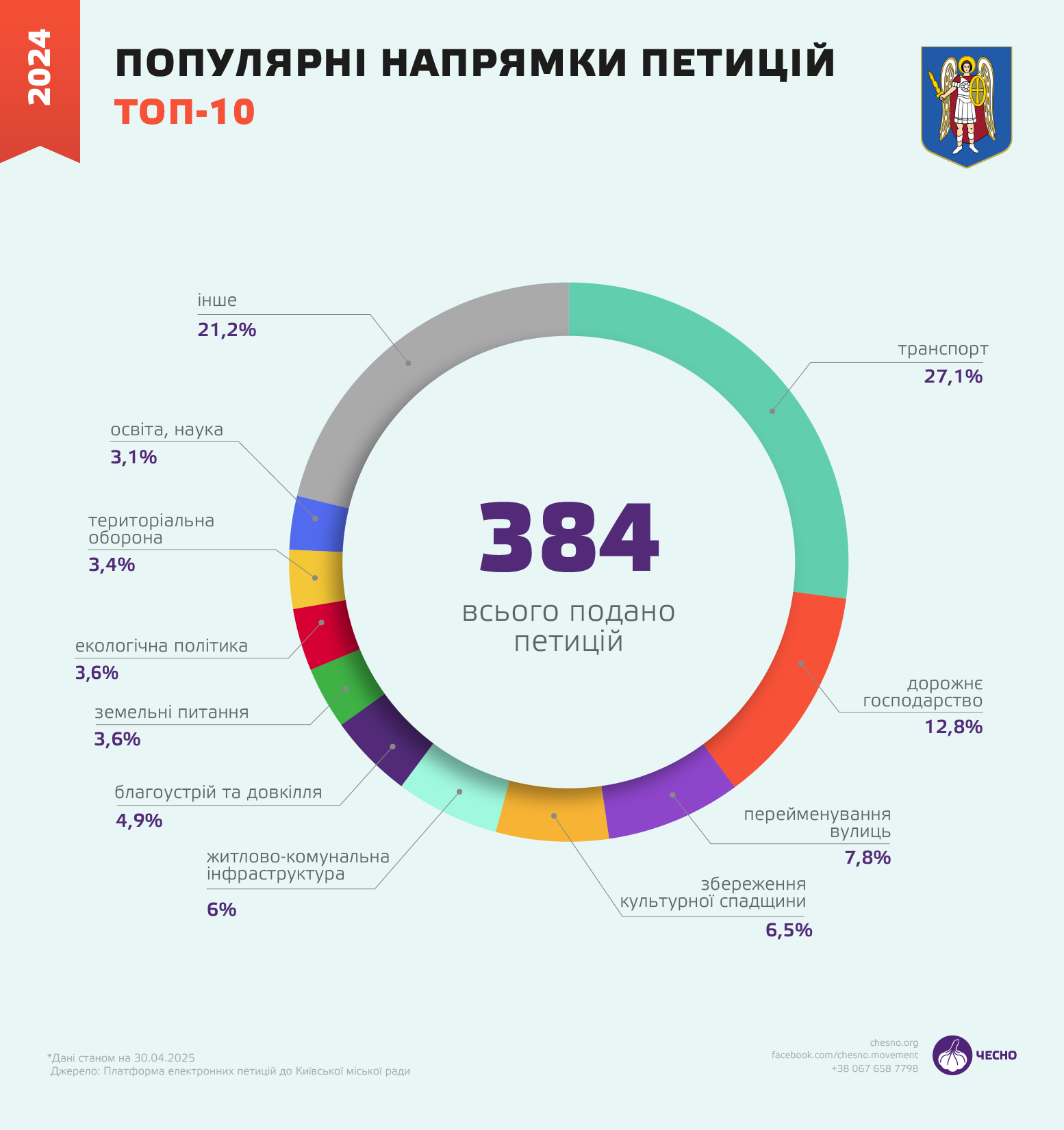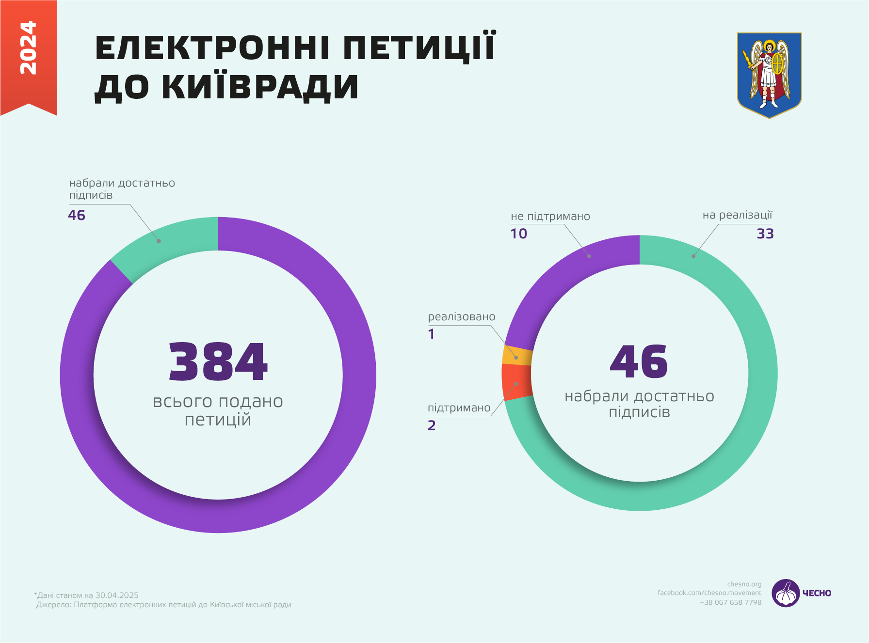Детальніше про те, якими були електронні петиції киян у 2024 році – в аналізі Руху «Чесно».