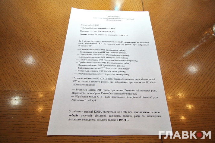 За даними моніторингу Міністерства регіонального розвитку, Київська область за показниками об'єднання територіальних громад займає 20 місце. Це дуже низький показник. Прокоментуйте ситуацію.