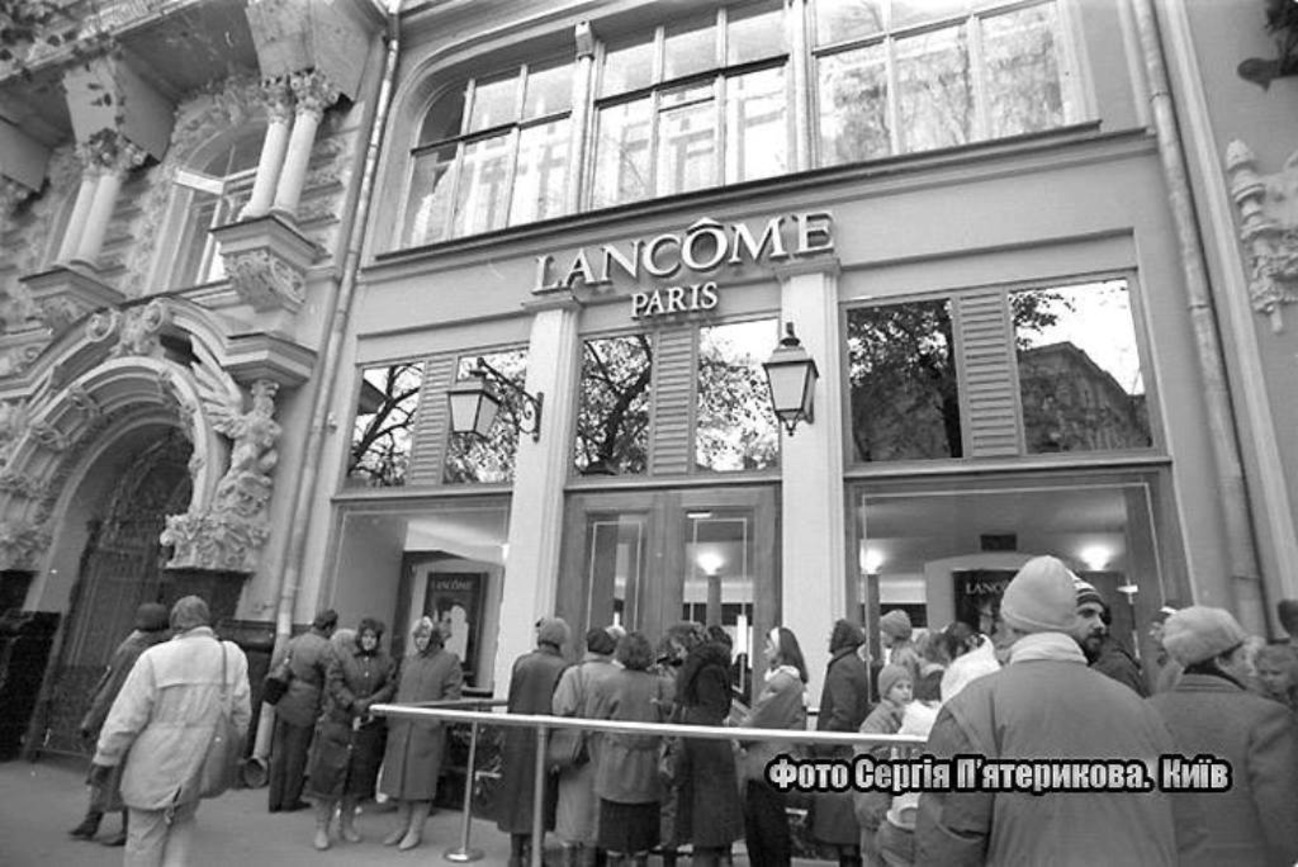 Через економічну кризу, яка вже поглинала «країну розвинутого соціалізму», полиці і без того вбогих магазинів зовсім спорожніли. І на цьому тлі фантасмагорійно й недосяжно сяяв «пришелець» – перший у Києві магазин зі світу капіталізму, бутик французької косметики Lancome, що відкрився на початку 1990 року. Lancome на вулиці Карла Маркса – це звучало як анекдот, як оксюморон.