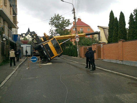 У Києві на приватний будинок впала стріла крана.