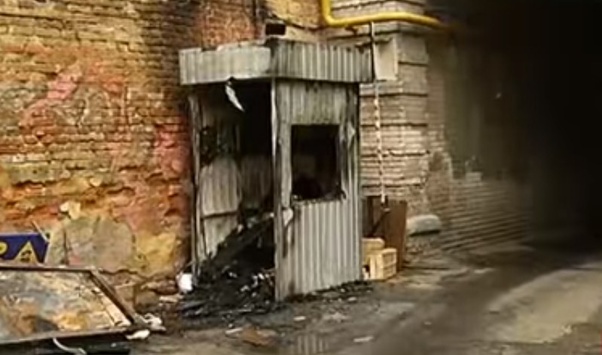 На вулиці Ярославів Вал зайнялась охоронна будка, усередині якої був чоловік.