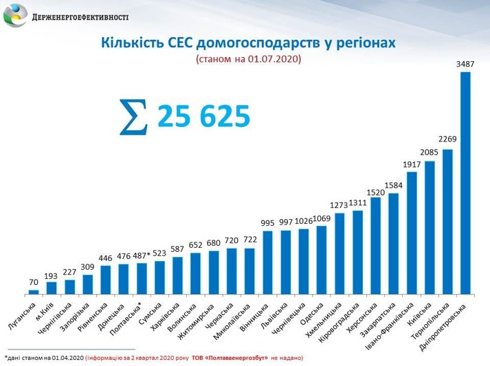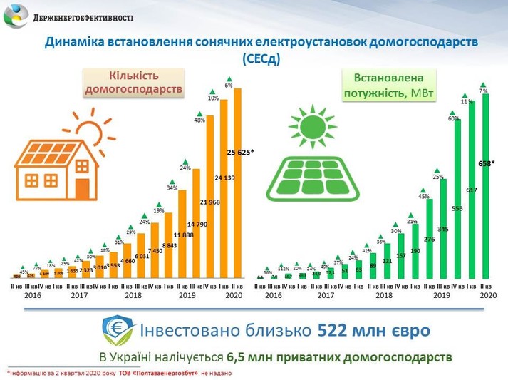 Зокрема, впродовж II кварталу 2020 р. ще близько 1500 домогосподарств перейшли на сонячні панелі.
