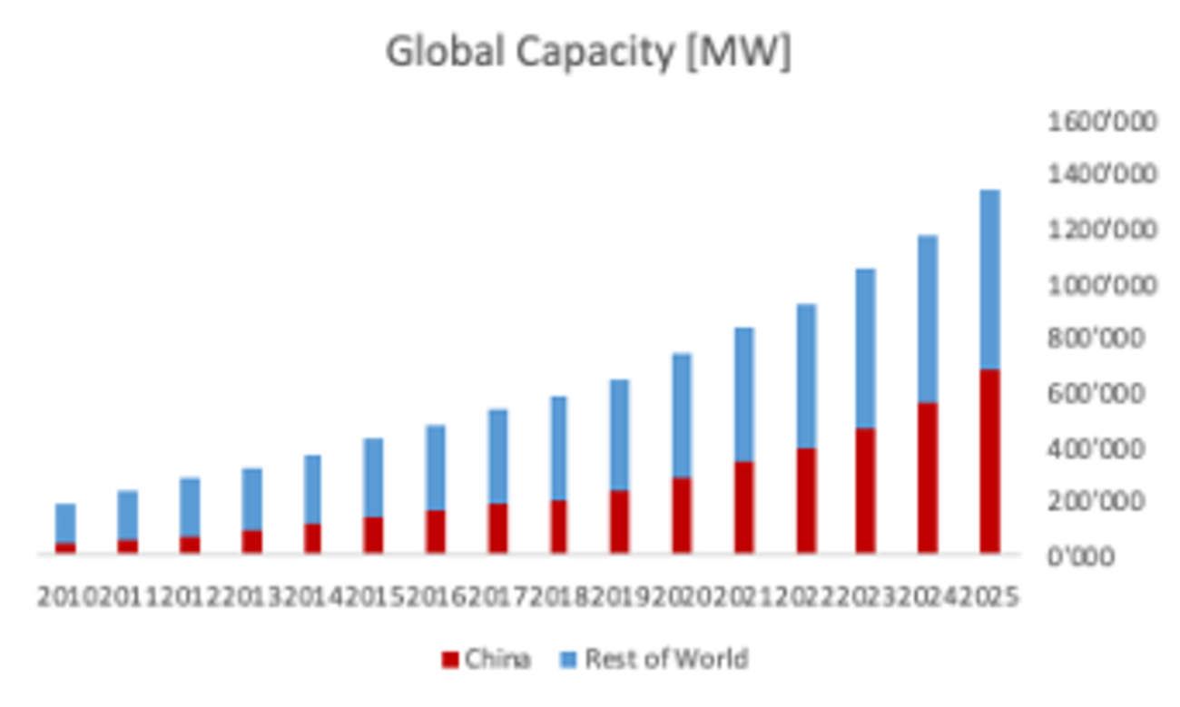 Колосальні 77% світового ринку нової вітрової енергії припадає на Китай. Там минулоріч встановили 130 ГВт потужності, що на 49% більше за рівень попереднього року. Частка КНР у світовій потужності вітрової енергетики зараз становить 50%.