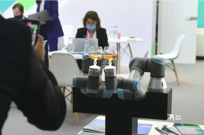 У Росії на виставці «Іннопром-2021» вчені з Липецька показали пару незвичайних роботів, які вміють тримати келих з випивкою і чокатися. Про це інформує «Комсомольская правда».