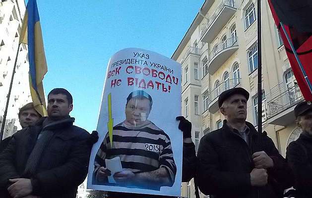 Активисты выставили большой цветной плакат с портретом президента Украины Януковича в арестантской одежде и надписью: «Указ президента Украины «Век Свободы не видать!». (Надпись была выполнена таким шрифтом, что было не ясно, какая именно свобода подразумевается – одноименная партия, или свобода собраний).