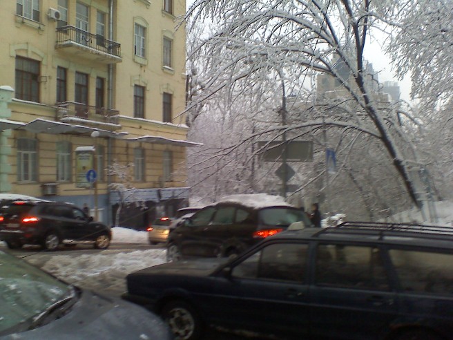 Дерево, упавшее под тяжестью снега, перекрыло движение автомобилей на перекрестке улиц Шелковичной и Богомольца. В результате инцидента пострадала одна припаркованная машина и линии электропередач. В машине пассажиров не было. Прохожих на улице в момент происшествия было мало, никто из них не пострадал.